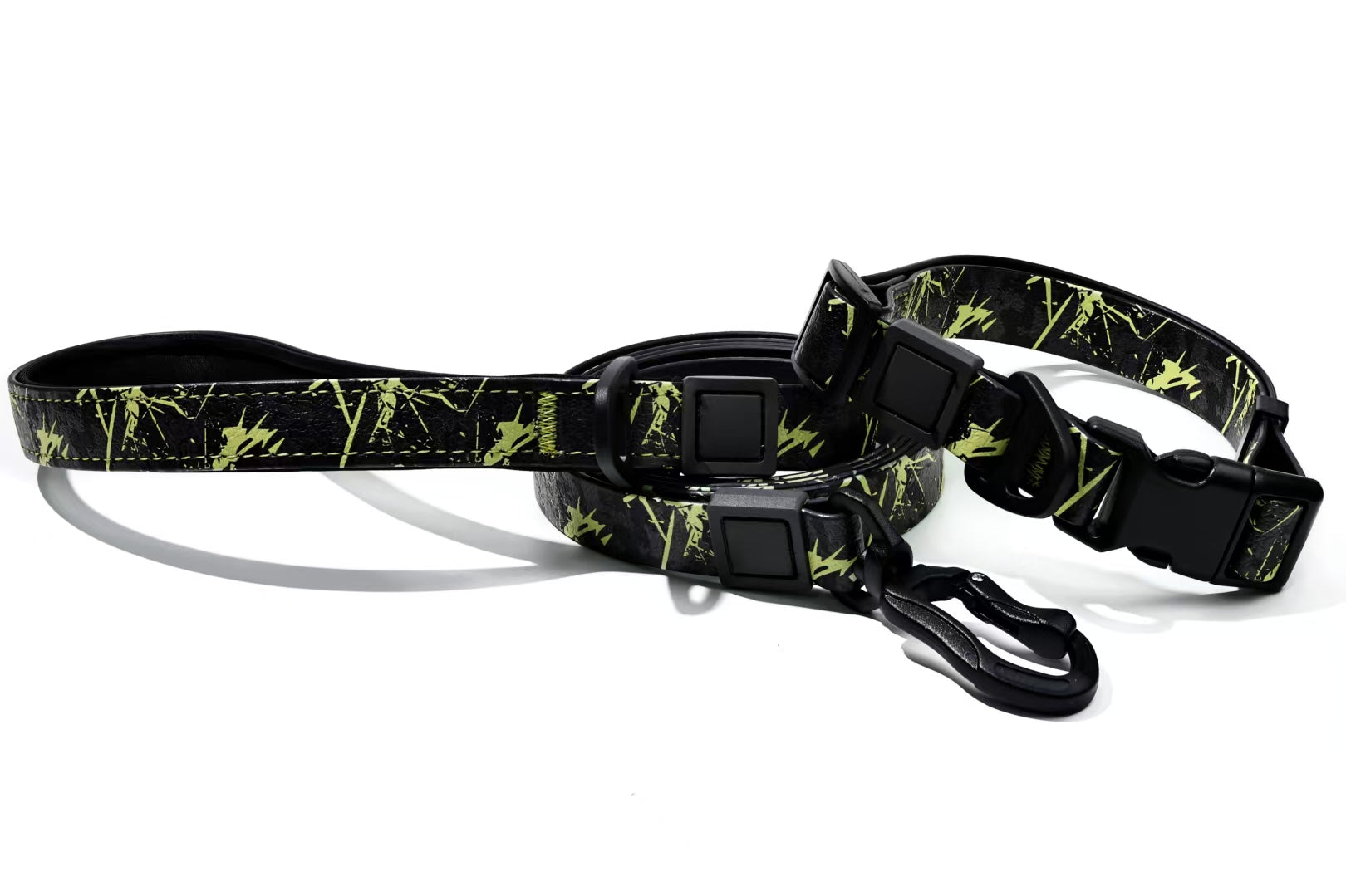 The UV printed camouflage embossed leash set is a high-quality product that combines good looks and functionality, specially designed for pets' outdoor activities. Every aspect from craftsmanship to materials has been carefully considered, making your pet look more during outings and giving owners more peace of mind when using it.